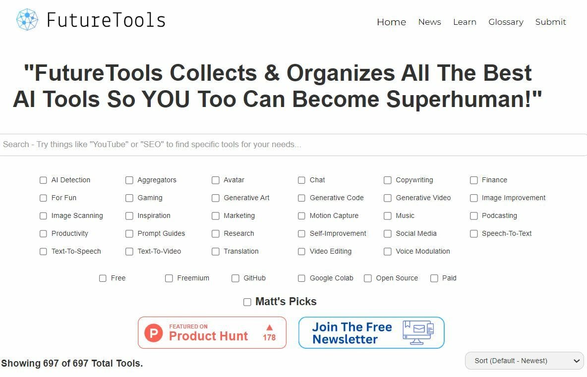 3) Futuretools.io and Futurepedia.io: Spilling the beans. I’ve been publishing this newsletter for a few months and have developed workflows and sources that help me bring you the latest AI tech as part of this Newsletter. Today, I’m sharing two really useful sources that have helped me, and will help you keep up with the rapid developments happening in this space.